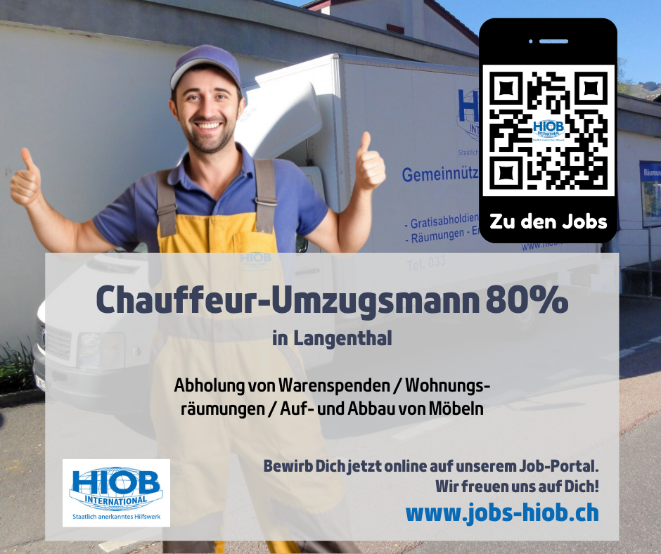 HIOB International ist ein staatlich anerkanntes Hilfswerk, dessen Hauptsitz und Abteilung Hilfsprojekte und Recycling in Steffisburg ansässig ist. Zur Finanzierung seiner Hilfstätigkeit und um den ökologisch sinnvollen Umgang mit gebrauchten Waren zu fördern betreibt HIOB schweizweit 25 Brockenstuben mit rund 160 voll- und teilzeit angestellten Mitarbeiterinnen und Mitarbeitern. Die Mitarbeitenden in allen Funktionen und Stufen sind sich bewusst, dass sie mehr oder weniger direkt ihre Arbeitskraft zur Linderung von Not in Drittwelt- und Schwellenländern einsetzen. Auch wenn im Alltag klare hierarchische Strukturen die Arbeit bestimmen, pflegt HIOB International einen sozialen und familiären Umgang innerhalb der Belegschaft. Werden auch Sie Teil dieses erfüllenden und interessanten Auftrages!